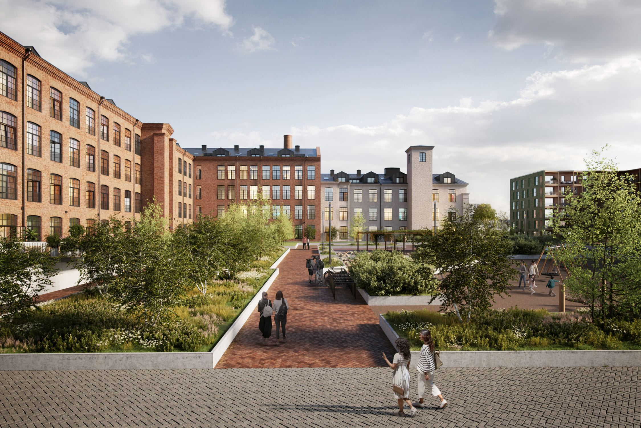 Manufaktuuri 12 ja ikoonilise Vabriku maja vahele jääb ka mitmekesine ja tegevuste rohke park, kust leiab jalutusteed, puhkealad, vee- ja liivamängude ala, ronimisala ning istumisalad.